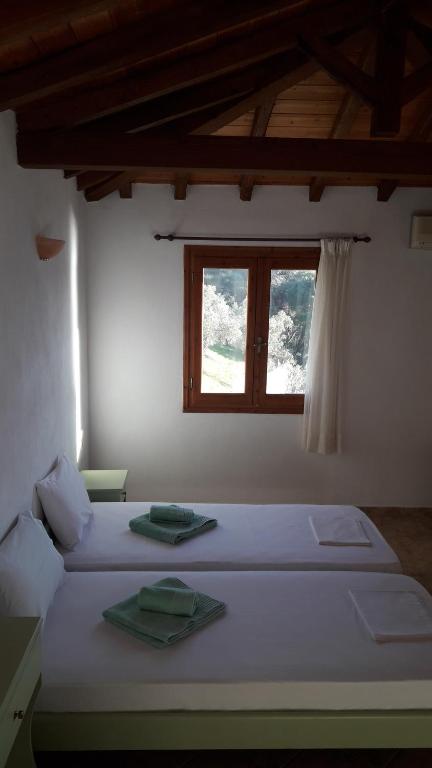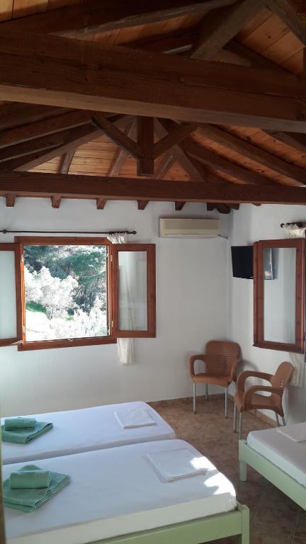 It is set in its own private grounds of 15,000 m2 of olive grove with panoramic views of the sea from the Kalamaki Peninsular, the yacht harbour, the town, the shipyard and the airport.