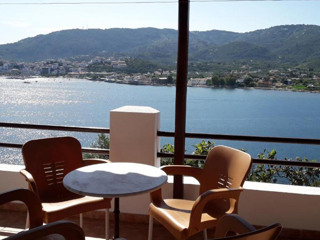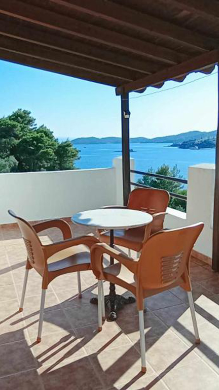 It provides private bathroom, TV., a/c, kitchen, free wiFi, parking and great veranda with spectacular view to the port and to Skiathos town.